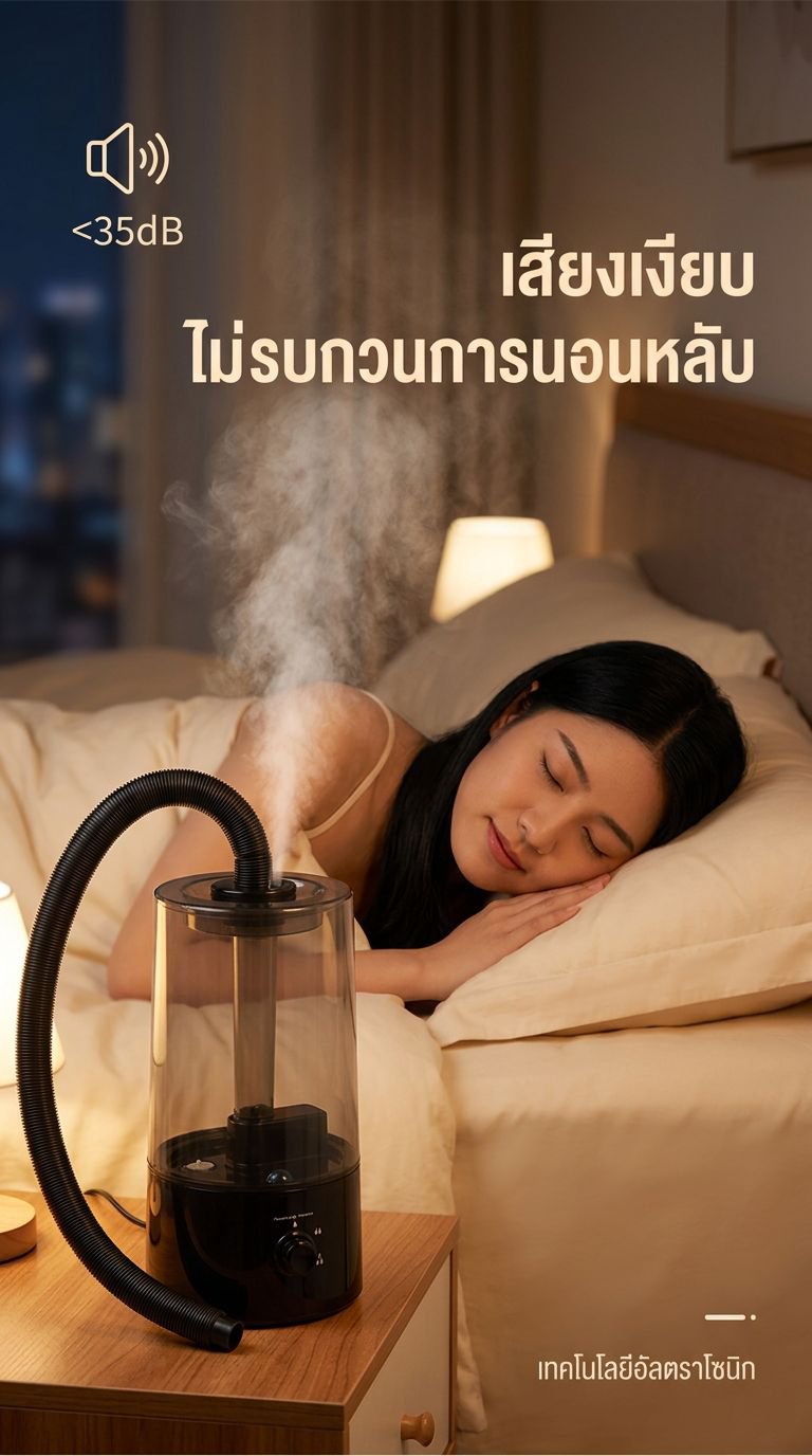 ● เครื่องเพิ่มความชื้นแบบไร้เสียง ช่วยปรับอากาศให้สดชื่น เหมาะสำหรับห้องนอนหรือห้องทำงาน ไม่รบกวนการพักผ่อนและการทำงานของคุณ